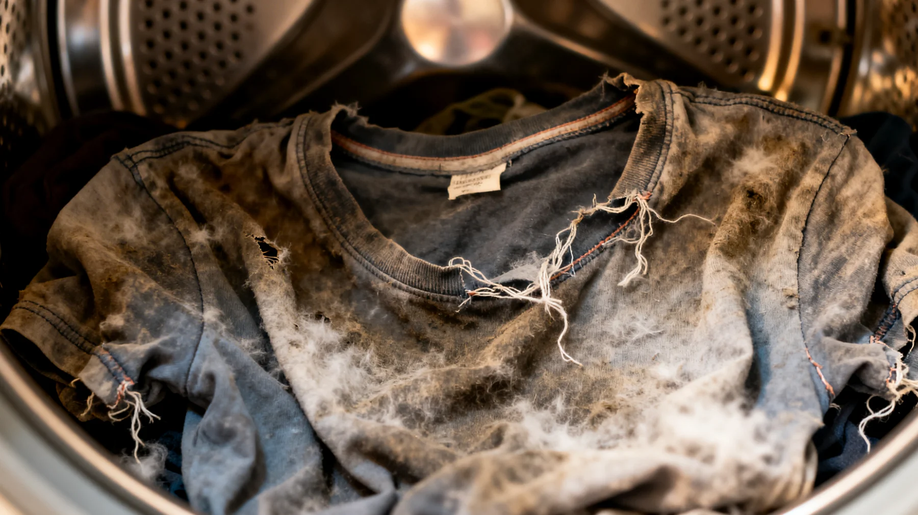 Farbpigmente in Baumwollgeweben sind meist Reaktivfarbstoffe, die an Zellulose gebunden sind. Diese Bindungen sind relativ stabil, aber temperatursensitiv. Im Trockner werden Temperaturen erreicht, die für viele Druckfarben und Farbstoffe problematisch sind. Wenn der Farbstoff zu stark erhitzt wird, können Bindungen geschwächt werden – Farbmoleküle verlieren an Stabilität. Dazu kommt die Oxidation durch heiße Luft, die den Farbton trübt und bleichen lässt. Das Ergebnis ist kein sofortiger Farbverlust, sondern eine langsame Mattigkeit, ein Ausbleichen, das besonders bei dunklen Shirts auffällt.